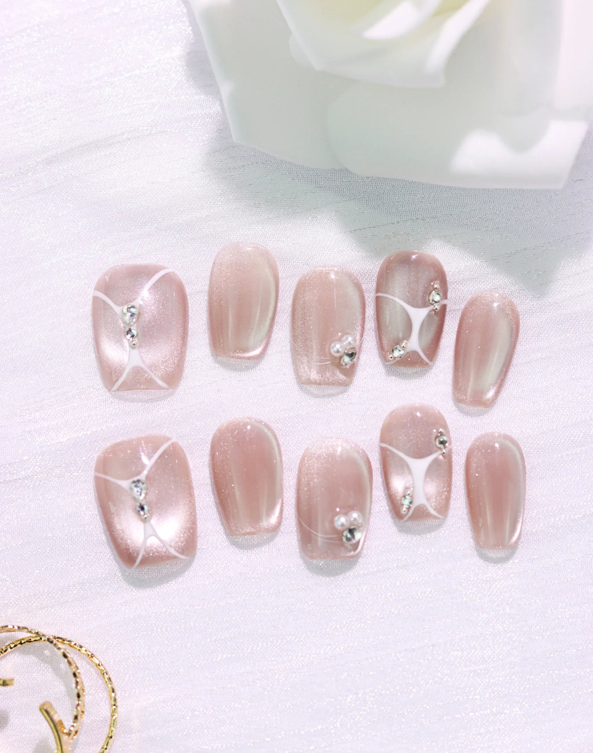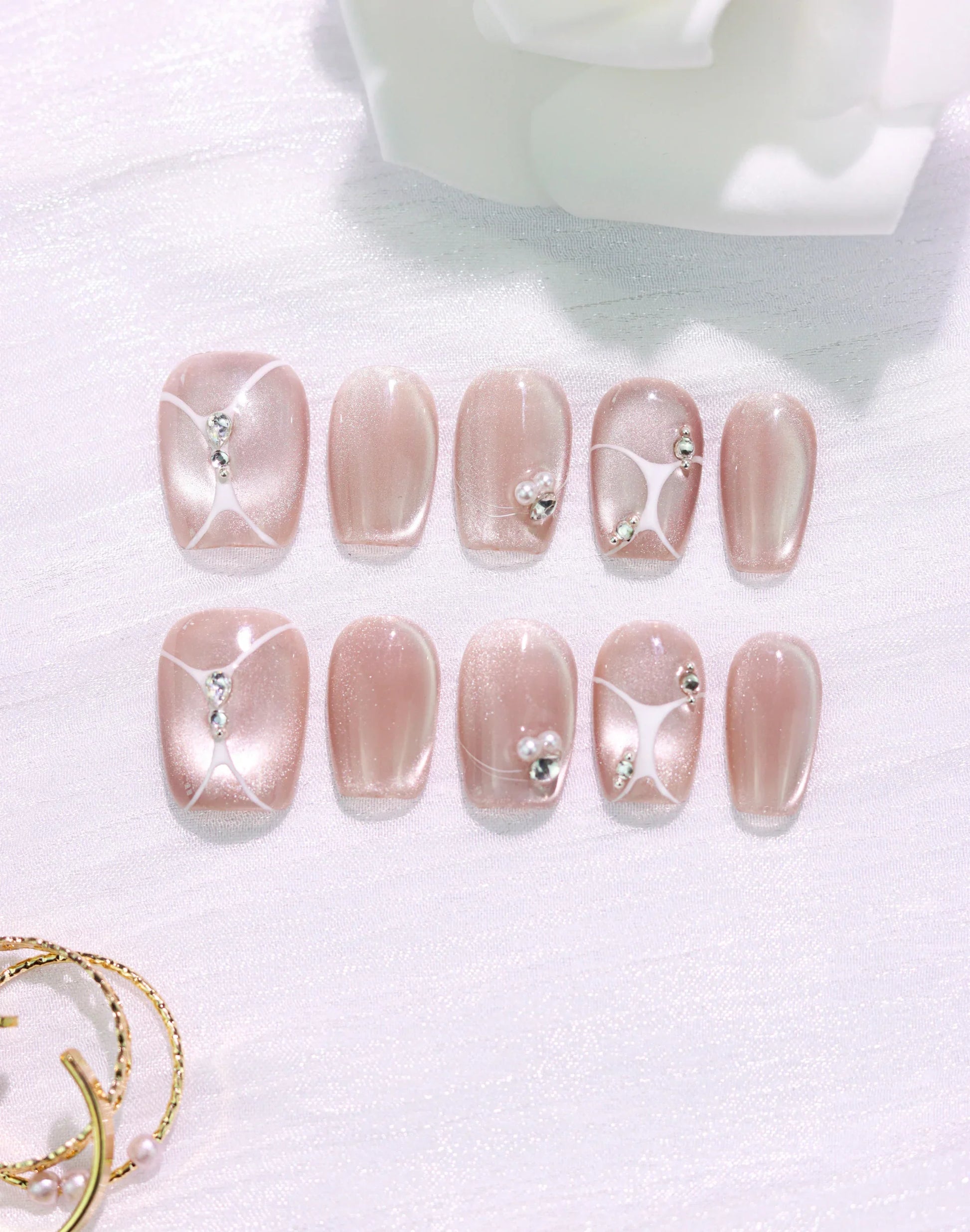 やわらかなシアーピンクをベースに、透明感のある質感を重ねたデザイン。